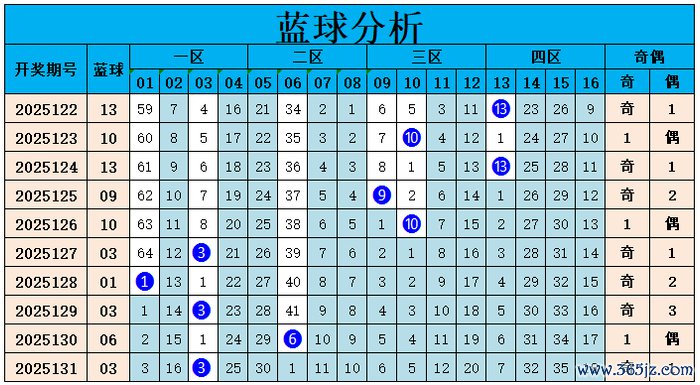蓝球分析:上期蓝球开出偶数号码03,近10期奇偶比为7:3,奇数走势稍热,近十期蓝球奇偶走势为:奇-偶-奇-奇-偶-奇-奇-奇-偶-奇-,本期蓝球怜惜偶数开出;本期蓝球参考:10