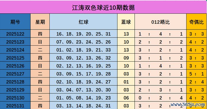 双色球第20250131期开奖:本期开奖号03,13,14,18,24,31。蓝球号码03。当期红球号码012路比3:2:1,奇偶比为3:3